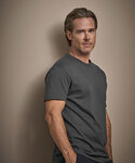 100% Ringspun combed cotton. Heather Grey: 85% Cotton, 15% Viscose. Two-layer collar with elastane. Shoulder-to-shoulder neck tape. Double stitched. Double pre-shrunk. Long-fibre cotton. Enzyme-washed. Silicone treatment. Washable at 60?C.
